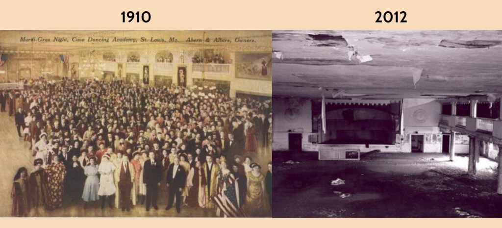 With the holidays coming up, festivity is to be expected. When it came to festivity in the 1910s – at least for the rebellious youth – dance halls often came to mind. Featured in my novel, Twisted River, St. Louis’s Cave Hall was one of the premier dance halls of the time and for many decades after under the name Castle Ballroom. Located above a row of Olive Street shops, Cave Hall’s wood-planked dance floor and extended ceiling encompassed most of the building’s top two floors. From the raised stage at its farthest end, a mixed band led hundreds of couples to the rhythms of a fresh ragtime beat. Up above, a narrow balcony allowed space to observe the dancing or spend more intimate time in its dark corners. But it was on the hall’s edges that the boisterous gaiety was at its most extreme. Trussed up ladies and their beaus shuffled together in merry conversation, often discussing nothing of more consequence than the latest twenty-minute nickelodeon film. They were out on the town; talk of employment and politics were serious topics for parlors and dining tables, not rebellious dance halls.